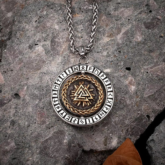 Viking Rotating Compass Necklace – Norse Runes Odin Amulet for Men