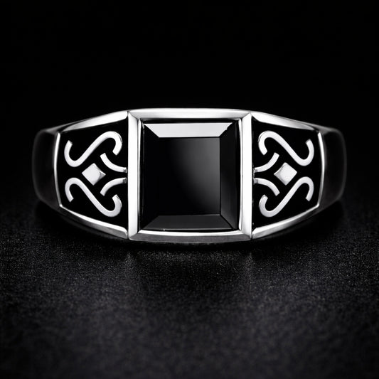 Adjustable Men’s Signet Ring – Black Stone Celtic Design