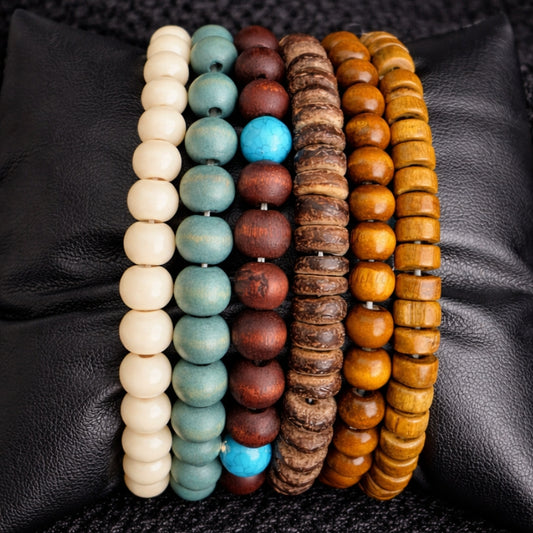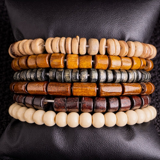 6-Piece Men’s Wooden Beaded Bracelet Set – Vintage Style Stack
