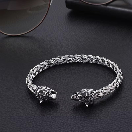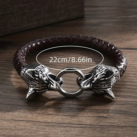 Men's Fashion Creative Design Braided Leather Domineering Wolf Head