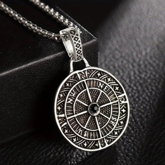 Men's Casual Vintage Viking Compass Pendant Necklace Fashion Jewelry